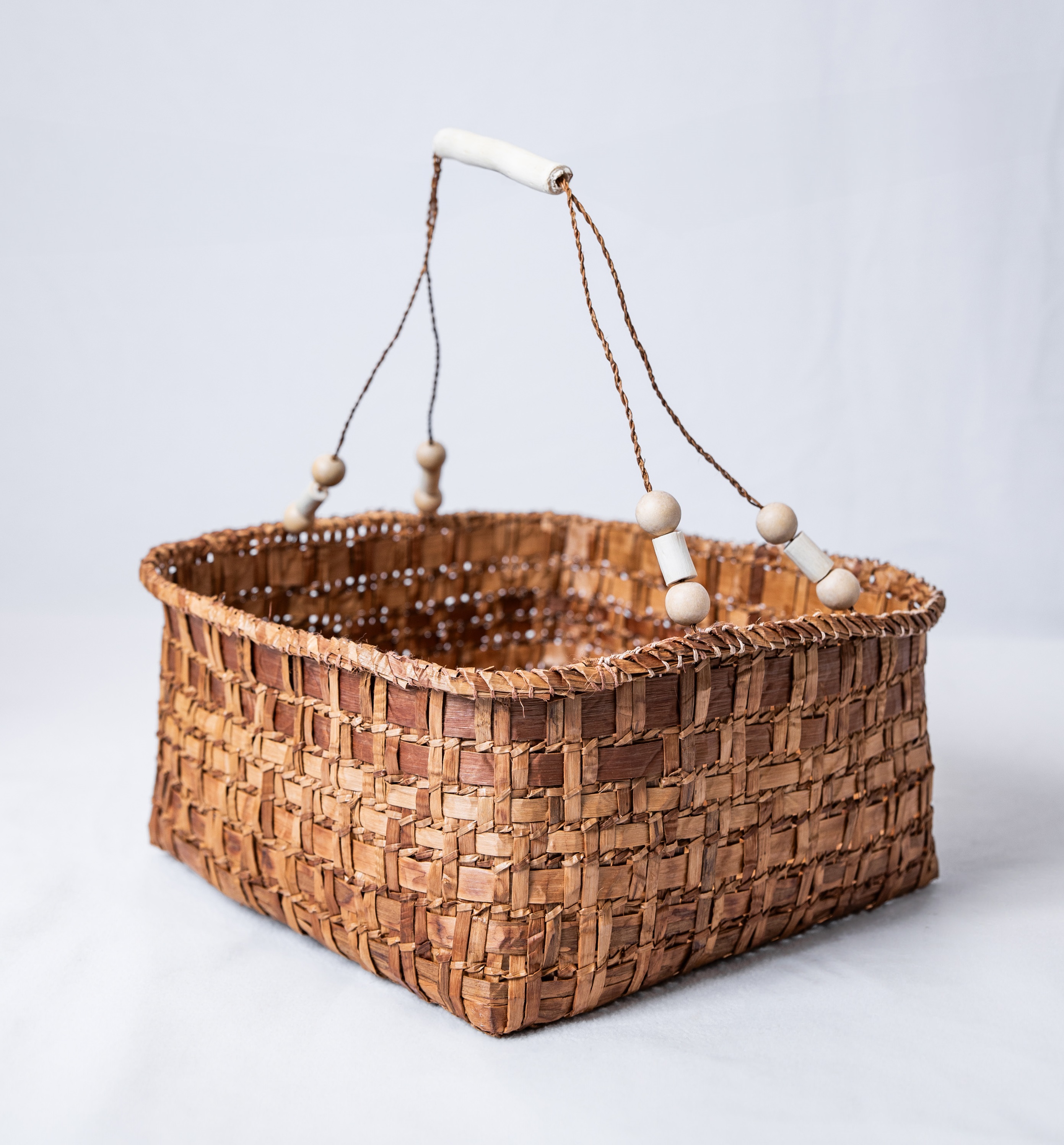 This basket is designed by Siem Te’ta-in and his niece Atheana Picha (Kwantlen/Tsartlip) Nations. Each intentionally woven line reflects a unique element of nature, honouring the deep interconnectedness.